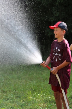 Odpoledne nás navštívila Jednotka sdružení dobrovolných hasičů z Brněnce a my jsme si tak mohli prohlédnout hasičskou výzbroj, auto s veškerým vybavením a dokonce jsme si i vyzkoušeli stříkat s hasičskou hadicí, což se mnohdy změnilo ve vodní souboj. Nadšení hasičů strhlo nejednoho táborníka, téměř by se dalo říci, že nejstarší oddíly si exkurzi užívali jako malí kluci. Děkujeme za tak skvělý zážitek!
