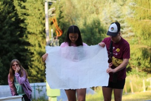 V průběhu závodu tým opiček našel neobvyklý předmět, který do pralesa vůbec nepatří. Tajuplný tubus se zvláštními poznámkami. Některé znaky šly velmi dobře číst, jiné tvořily klikyháky, které ani Borka nepřelouskala. Díky našim nejmenším táborníkům jsme zvládli přečíst všechno. Pravděpodobně máme mezi sebou nějakého zrádce a tento tajuplný tubus jsme vůbec neměli najít. Ukazuje, že se dnes okolo 22 h má něco dít.